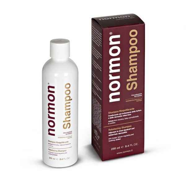 Normon Shampoo Riequilibrante è formulato appositamente per la detersione del cuoio capelluto affetto da dermatite seborroica o da fenomeni di tipo desquamativo e relativa infiammazione. Grazie alla ricca formulazione a base di principi attivi e tensioattivi delicati, svolge un’azione dermopurificante e seboregolatrice, per il ripristino della salute della cute e del capello. Utilizzata due o tre volte alla settimana, aiuta a normalizzare la produzione di sebo e forfora e a contrastare le alterazioni della flora micotica del cuoio capelluto, senza seccare e donando lucentezza alla chioma.